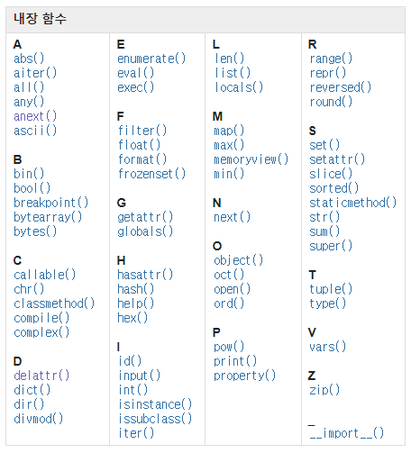 본 게시글에서는 Python에서 기본으로 제공되는 내장 함수 A~E에 해당하는 함수들을 소개한다.
